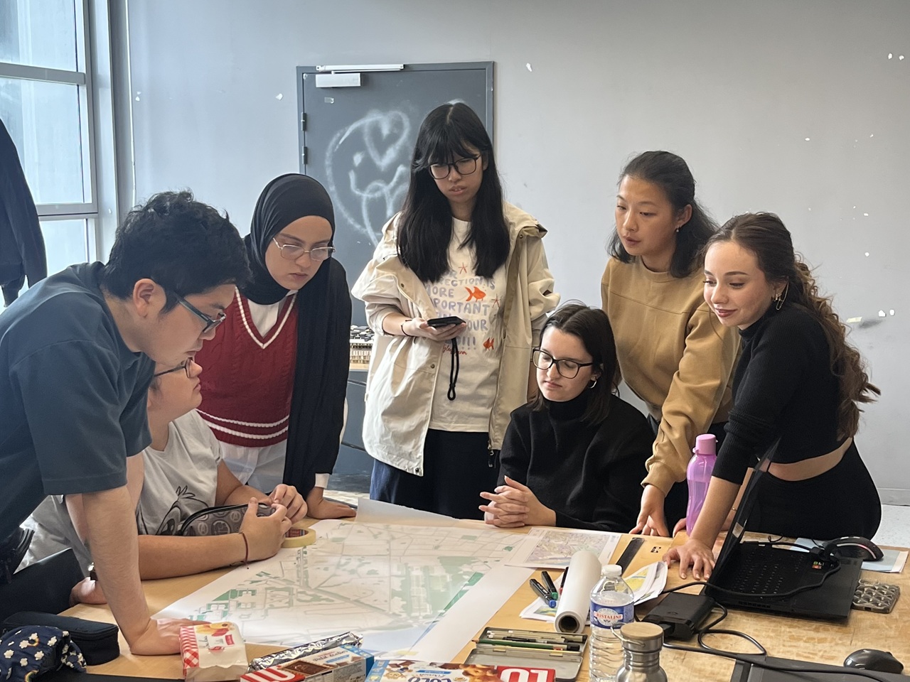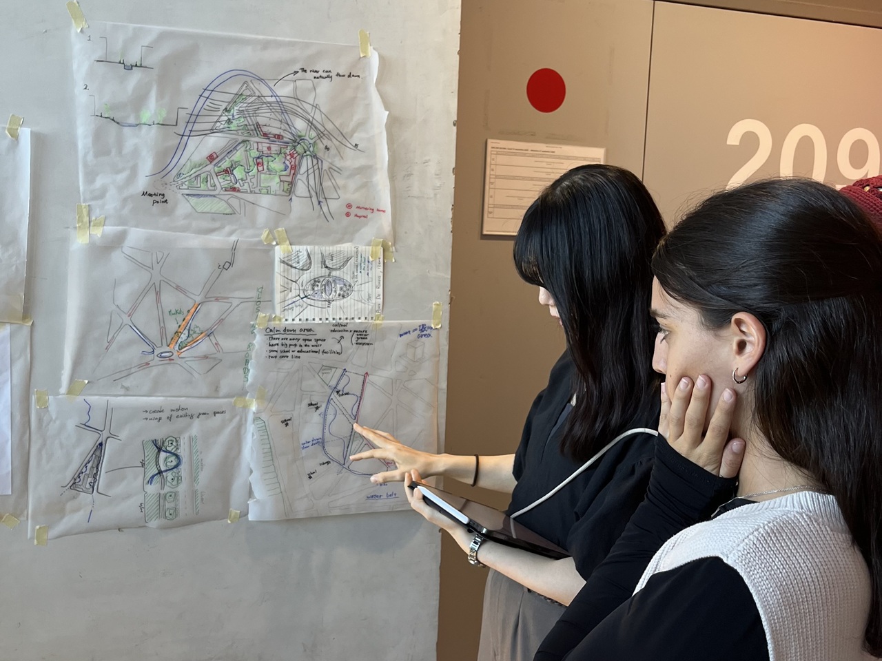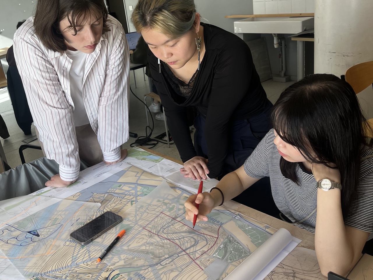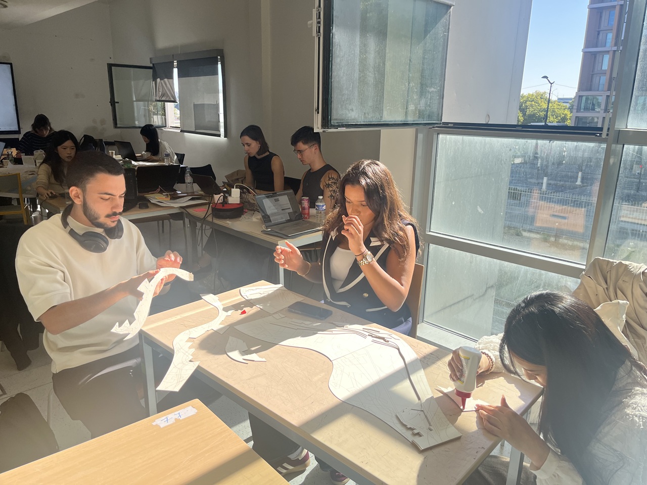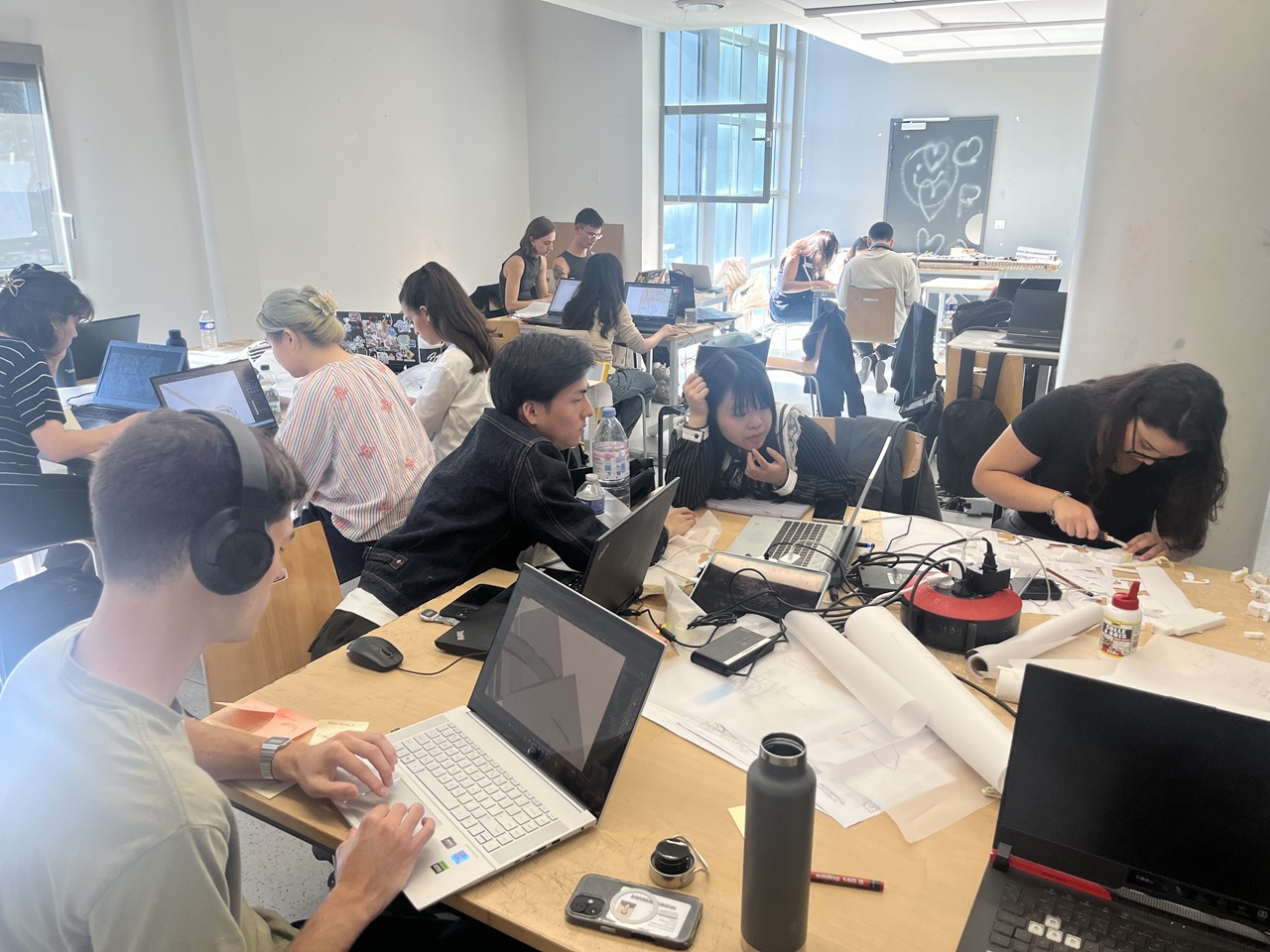 大学院環境学研究科都市環境学専攻建築学コースは、2025年9月15日(月)から19日(金)までの5日間、フランスのパリ・ヴァル・ドゥ・セーヌ国立高等建築学校(ENSAPVS)を主会場として、ENSAPVSと合同で国際学生建築・都市設計ワークショップを開催しました。「What if the Bièvre river were to flow once more through the heart of Paris」という今回の課題に、ENSAPVSの留学生22名と天津大学の学生4名、そして本学の建築学コース博士前期課程1年の後藤和也君、佐藤舞千代さん、山本蒼太君、渡辺早紀さんの4名が参加し、4つの混成チームに分かれて本課題に取り組みました。ENSAPVS参加学生22名は、スペイン、モロッコ、ドイツ、ポーランド、メキシコ、ブラジル、スイス、アメリカ、イタリア、オーストリアと多岐にわたる国籍を有しており、これまでになく国際性豊かなワークショップとなりました。本WSの指導はENSAPVSのBoris Weliachew教授、天津大学の鄭穎副教授と本学の小松尚教授、項一朗助教が行いました。